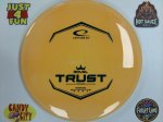 This midrange workhorse is stable and straight when thrown with some power. For slower throws it has that dependable gliding fade. The beadless smooth rim makes the Trust great for both backhand and forehand throws.