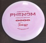 The Phenom is an 8 speed driver with lots of glide. The Phenom does not stray far from the line you release it on. A slight turn in the beginning of its flight and slightly more fade at the end of its flight makes for pinpoint accuracy.